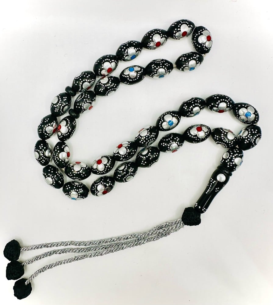 سبحه من خشب الكوك تتكون من 33 حبه تتميز بمنظر جميل ومتميز بتراث الحجازي القديم التي يتجسم في التكتيل بشكل الكورة